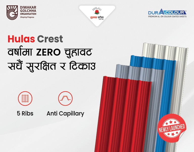 Hulas Hipco Pipes is a trusted brand that has been used in Nepali homes for years which is rust-resistant and highly reliable. The division is equipped with three tube mills manufacturing 1/2″ to 8″ NB nominal bore ERW steel pipes, square and rectangular hollow section, round tubes, cold-formed angles, channels lip channels, and Z purlins.