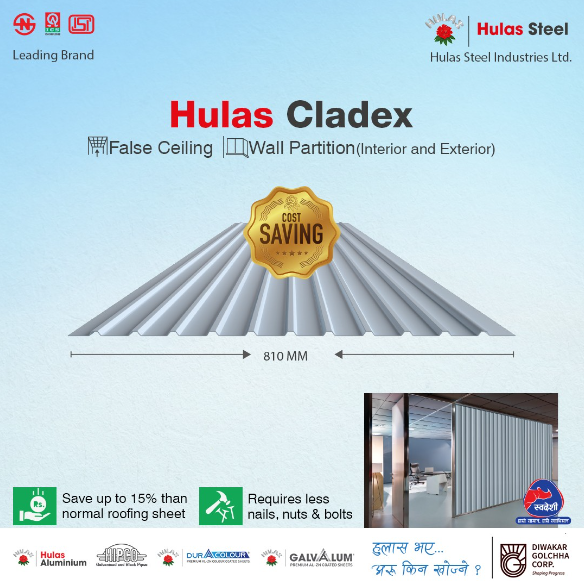 Hulas Cladex is cost-effective and gives the home a very attractive look. It can be used for false ceilings and both indoor and outdoor partition.